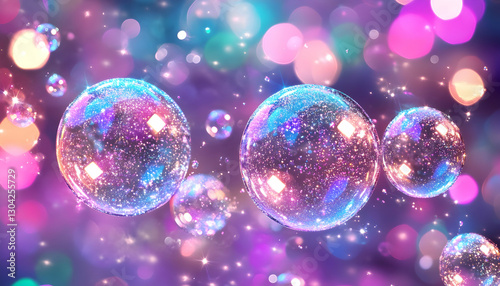 Floating glitter bubbles in vibrant bokeh lights