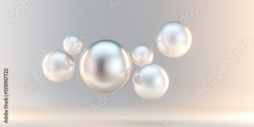 Floating glossy white spheres in a minimalistic abstract 3d composition
