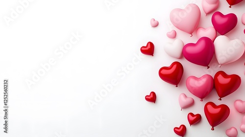 Floating Heart-Shaped Balloons in Red and Pink on a White Background