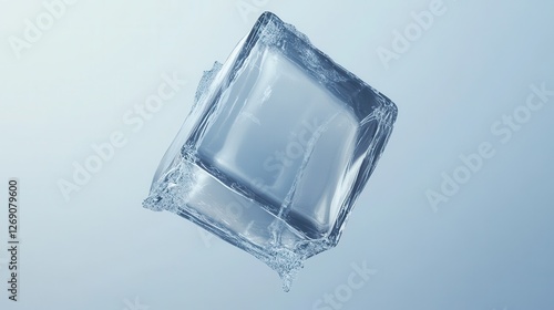 Floating Ice Cube in Clear Water Against Soft Gradient Background