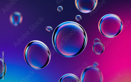 Floating iridescent bubbles on a vibrant gradient background