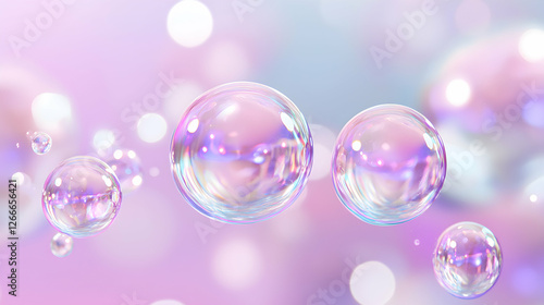 Floating Iridescent Soap Bubbles Against Soft Bokeh Background for Dreamy Visuals