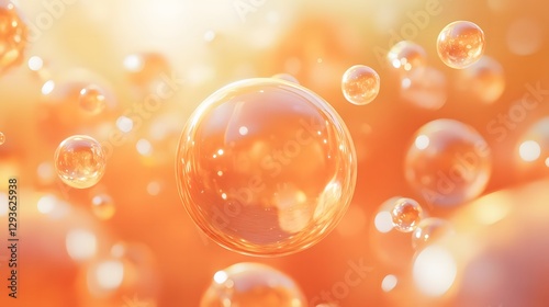Floating orange bubbles in a dreamy atmosphere with a soft glow