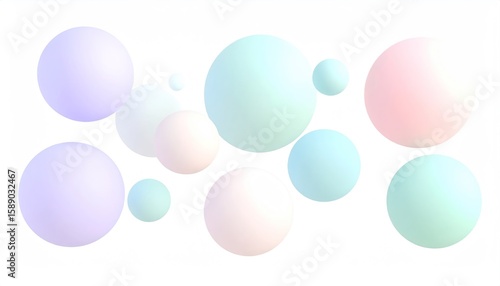 Floating Pastel Spheres Against White Background Displaying Soft Light and Color Gradients