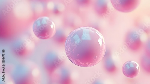 Floating Pink Spheres in Ethereal Setting Evoking Serenity and Calmness