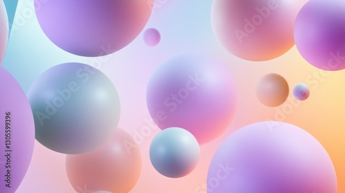 Floating spheres of various sizes and colors create an abstract design