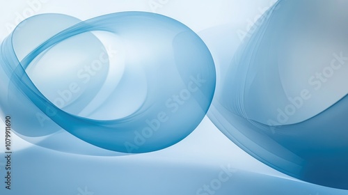 Floating transparent shapes in a soft blue gradient background, creating a calm and minimal abstract scene