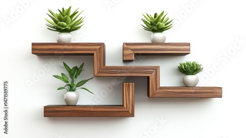 Floating wall display shelves isolated on white background