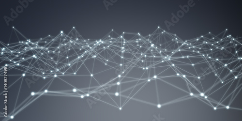Floating white and blue dot network 3D rendering