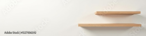 Floating wooden shelves, stacked, light wood tone, white backdrop , shelf, empty