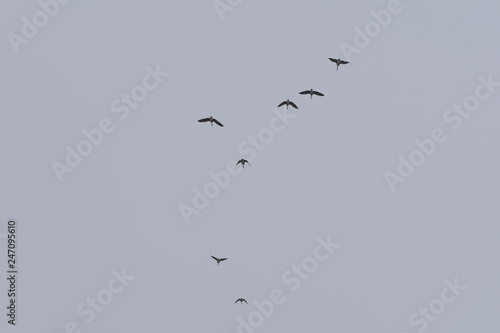 flock of birds flying in the sky