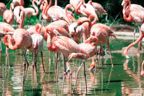 Flock of greater flamingos (Phoenicopterus roseus)