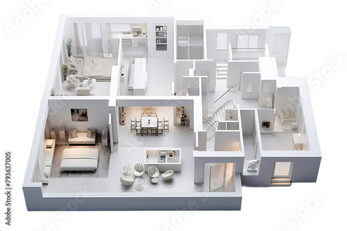 Floor plan top view. Apartment interior 3D render isolated on a Transparent background. Generative AI
