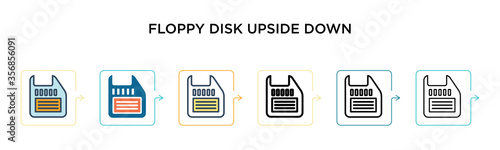 Floppy disk upside down vector icon in 6 different modern styles. Black, two colored floppy disk upside down icons designed in filled, outline, line and stroke style. Vector illustration can be used