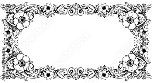 Floral Frame: A delicate and ornate floral frame, in black and white, provides an elegant border, perfect for adding a touch of vintage charm to any design.
