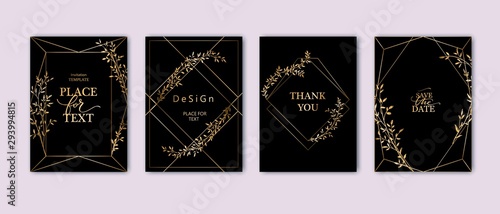 Floral frame design. Wedding invitation arrangement. Botanical composition with geometric frame. Hand drawn flowers, leaves, branches. Composition for card, invitation, save the date.