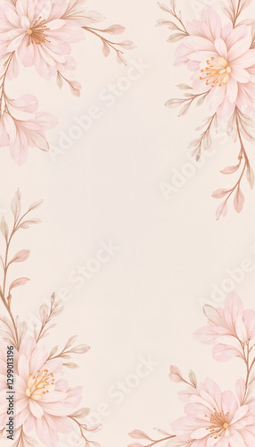 Floral frame with pink flowers and leaves for spring design, background