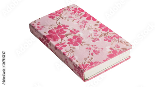 Floral Notebook: A beautifully designed notebook features a delicate pattern of pink floral blossoms, showcasing both the object and its aesthetic appeal.