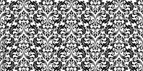 Floral pattern. Vintage wallpaper in the Baroque style. Seamless vector background. White and black ornament for fabric, wallpaper, packaging. Ornate Damask flower ornament