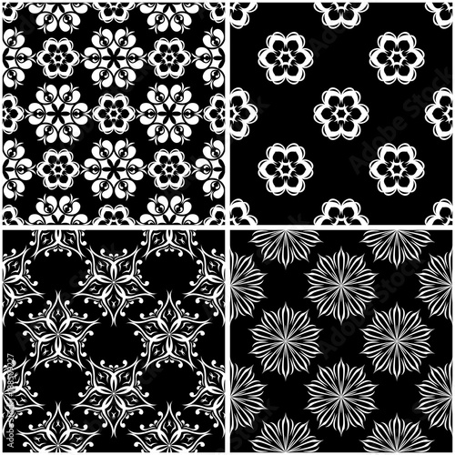 Floral patterns. Set of black and white seamless backgrounds