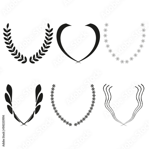 Floral wreath icon. Heart shaped decoration. Vector ornament design. Black and white pattern.