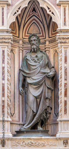Florence - The bronze statue St. John the Baptist on the facade of Orsanmichele by Lorenzo Ghiberti (1414-1416).