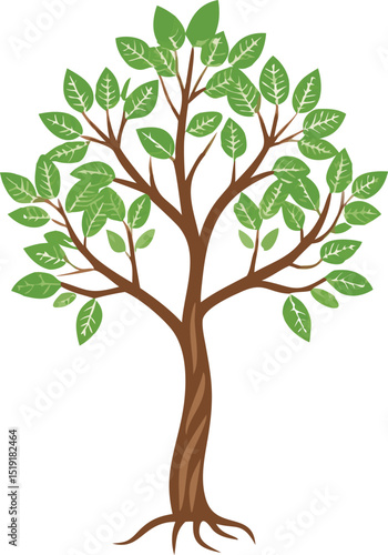 Flourishing Tree: A vibrant illustration of a healthy tree with lush green leaves and a sturdy brown trunk, symbolizing growth, life, and the environment.
