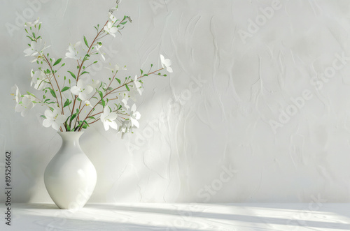 Flower bouquet in a vase on a light background. Free space, space for text.