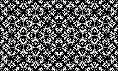 Flower geometric pattern. Seamless vector background. White and black ornament.
