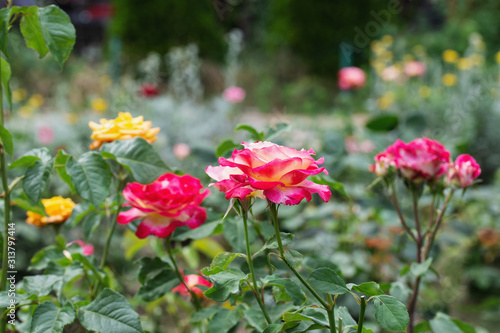 Flowerbed with flowers roses of different colors