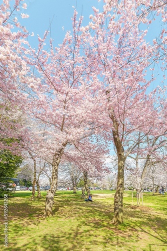 Flowering sakura trees in the park