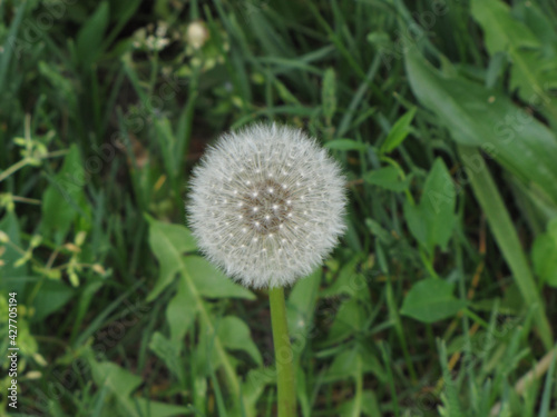 Flowers in green grass. Spring time. Sunny day.