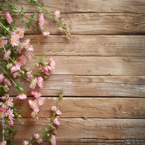 Flowers on a wooden board background modern, minimalist high quality