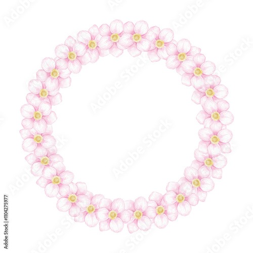 flowers. Round watercolor frame template on white background in pastel colors. Cute frame for invitations and congratulations