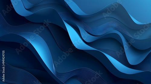 Flowing Blue Abstract Waves Smooth Curve Elegant Digital Art Background