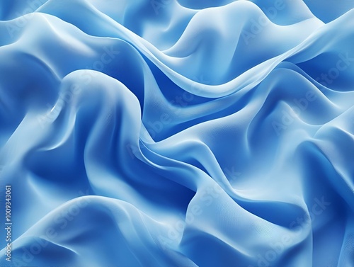 Flowing Blue Silk Fabric Background with Soft Waves and Folds, Creating a Serene and Elegant Texture for Luxury and Fashion Themes.
