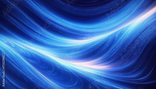 Flowing bright blue and white light streaks creating dynamic wave patterns on a deep blue background, evoking energy and fluidity