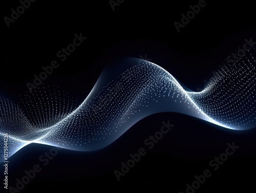 Flowing data stream on black, for tech design. Background light enhances depth & movement