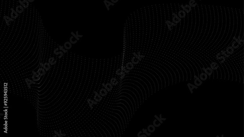 Flowing dots particles wave pattern 3D curve halftone gradient curve shape isolated on black background. Vector in the concept of technology, science, music, modern, cover, poster, flyer, card, web.