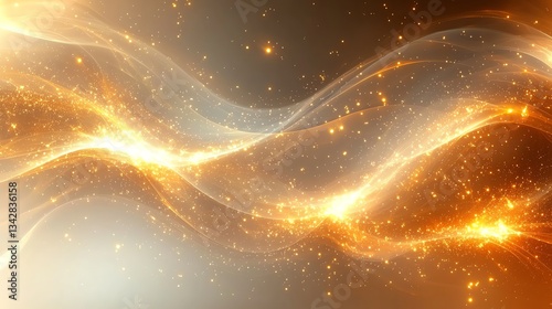 Flowing Golden Light with Sparkling Particles Abstract Background Design Element