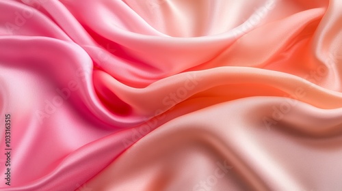 Flowing pink and peach silk fabric, soft texture. Elegant material and textile concept