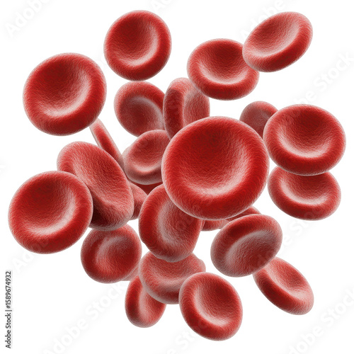 Flowing red blood cells, microscopic image of red blood cells flowing through a vessel, isolated on transparent background