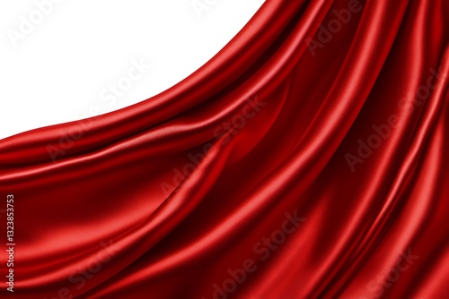 Flowing red satin fabric displayed against a white background elegantly