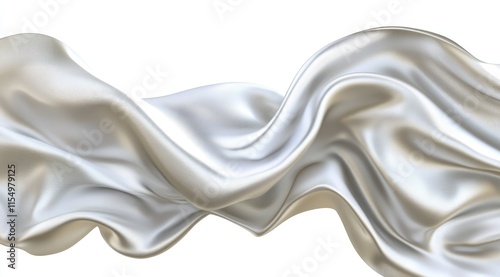 Flowing silver fabric, elegant waves, smooth texture, isolated on white.