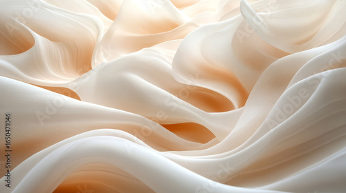 Flowing, soft, light peach-toned fabric drapes in elegant folds