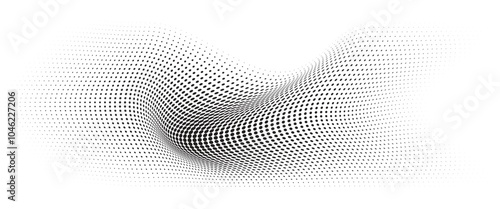 Flowing Wave Dot Halftone Pattern: Curve Gradient Shape on Transparent Background. Suitable for AI, Tech, Network, Digital, Science, and Technology Themes.