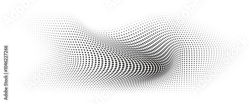 Flowing Wave Dot Halftone Pattern: Curve Gradient Shape on Transparent Background. Suitable for AI, Tech, Network, Digital, Science, and Technology Themes.