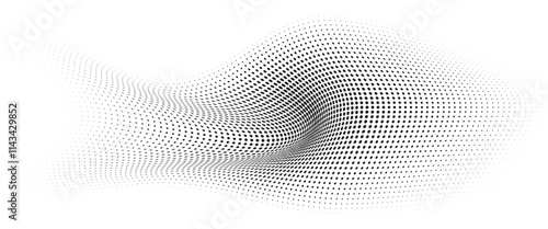Flowing Wave Dot Halftone Pattern: Curve Gradient Shape on Transparent Background. Suitable for AI, Tech, Network, Digital, Science, and Technology Themes.