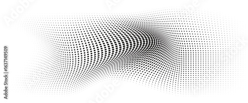 Flowing Wave Dot Halftone Pattern: Curve Gradient Shape on Transparent Background. Suitable for AI, Tech, Network, Digital, Science, and Technology Themes.