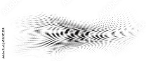 Flowing Wave Dot Halftone Pattern: Curve Gradient Shape on Transparent Background. Suitable for AI, Tech, Network, Digital, Science, and Technology Themes.